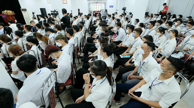한국에서 일을 할 수 있는 근로자를 모집 중에 많은 베트남 사람들이 모였고