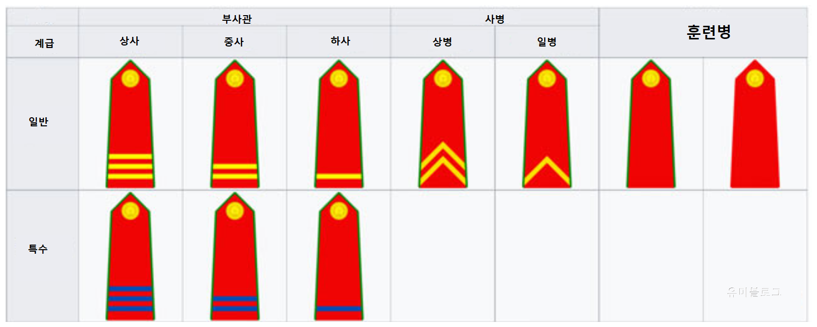 위 장교계급에 특수경찰이 있듯이 부사관에도 특수경찰이 있으며 사병에는 특수경찰이 운영되고 있지 않습니다.